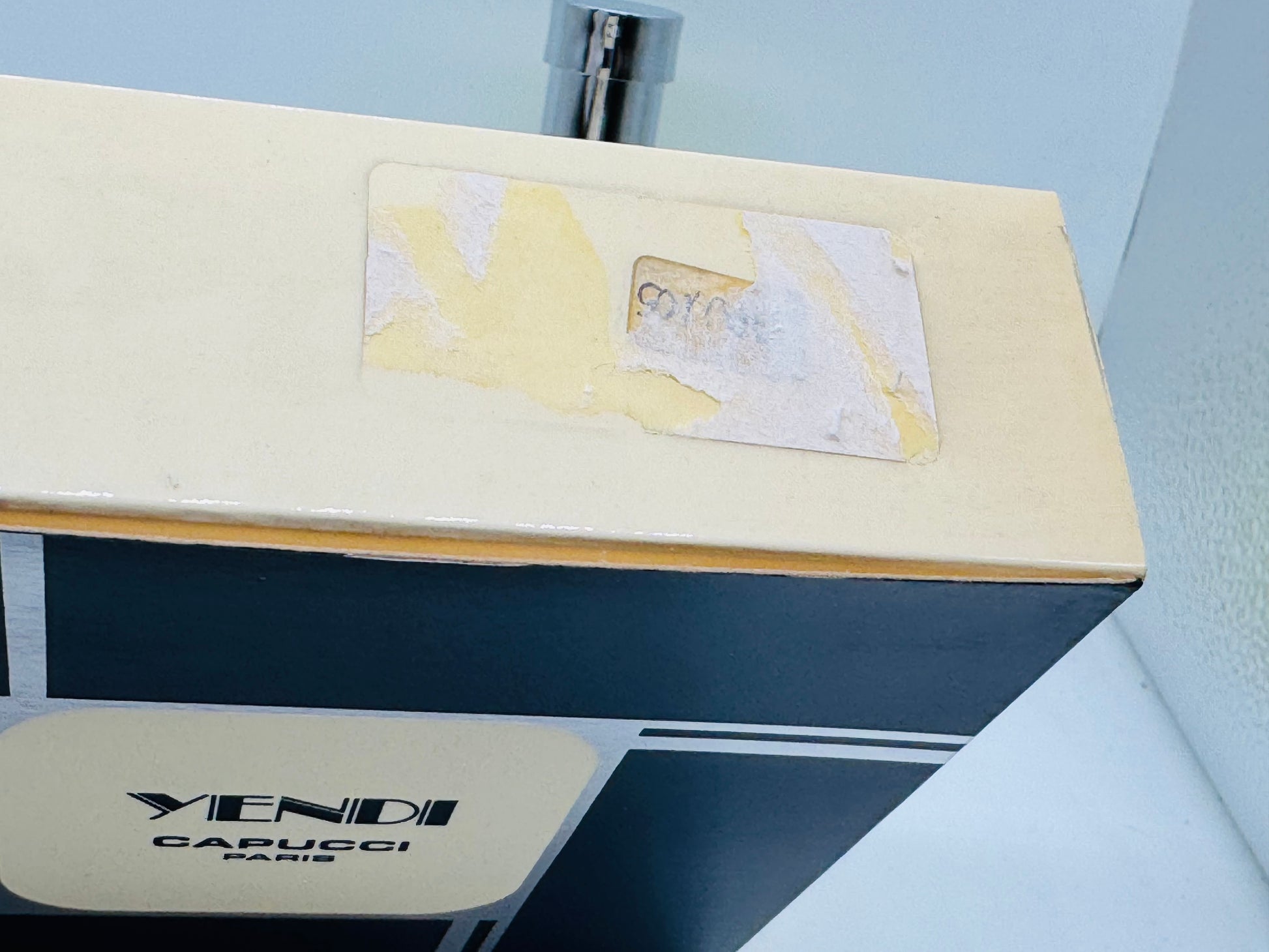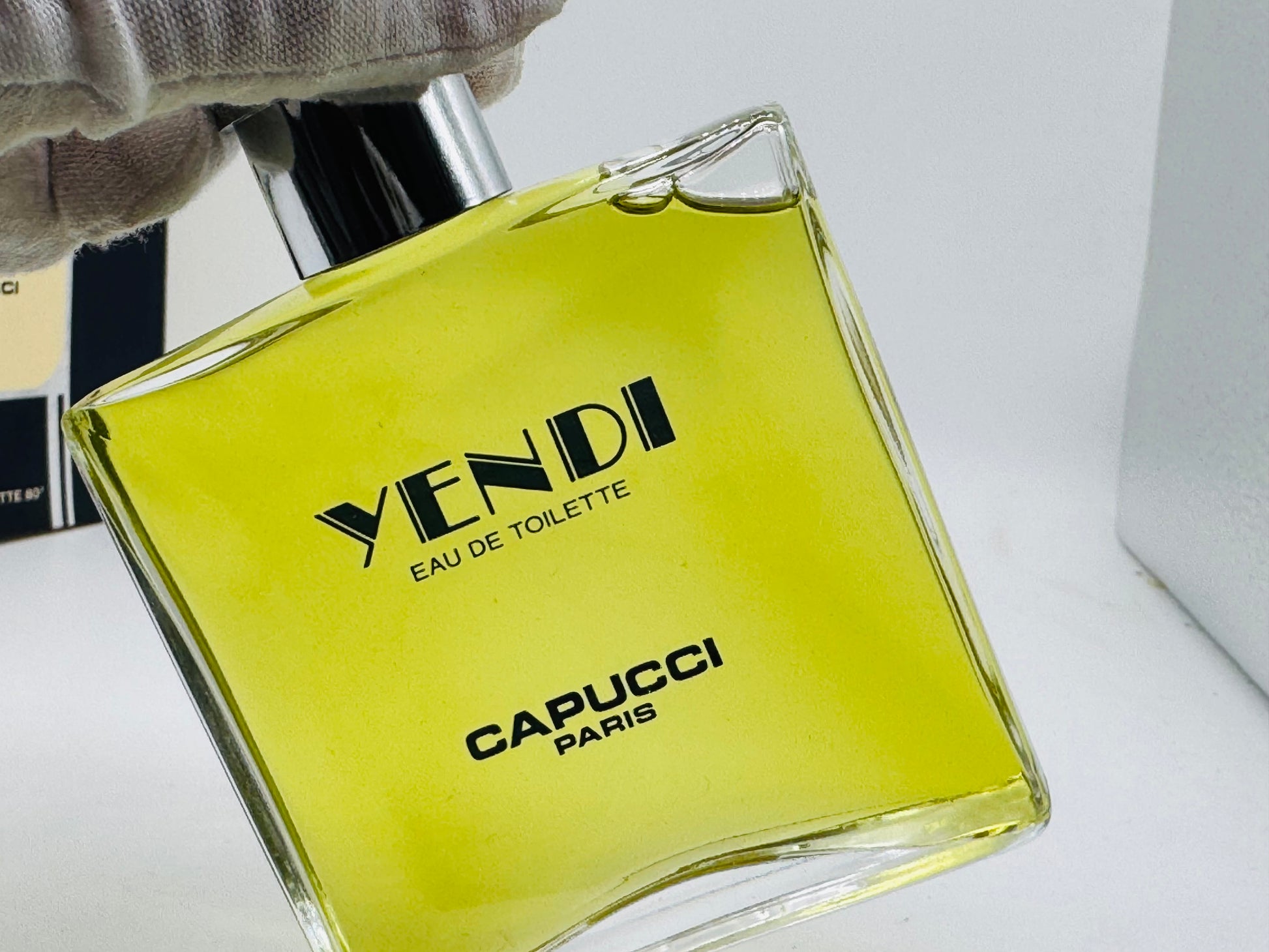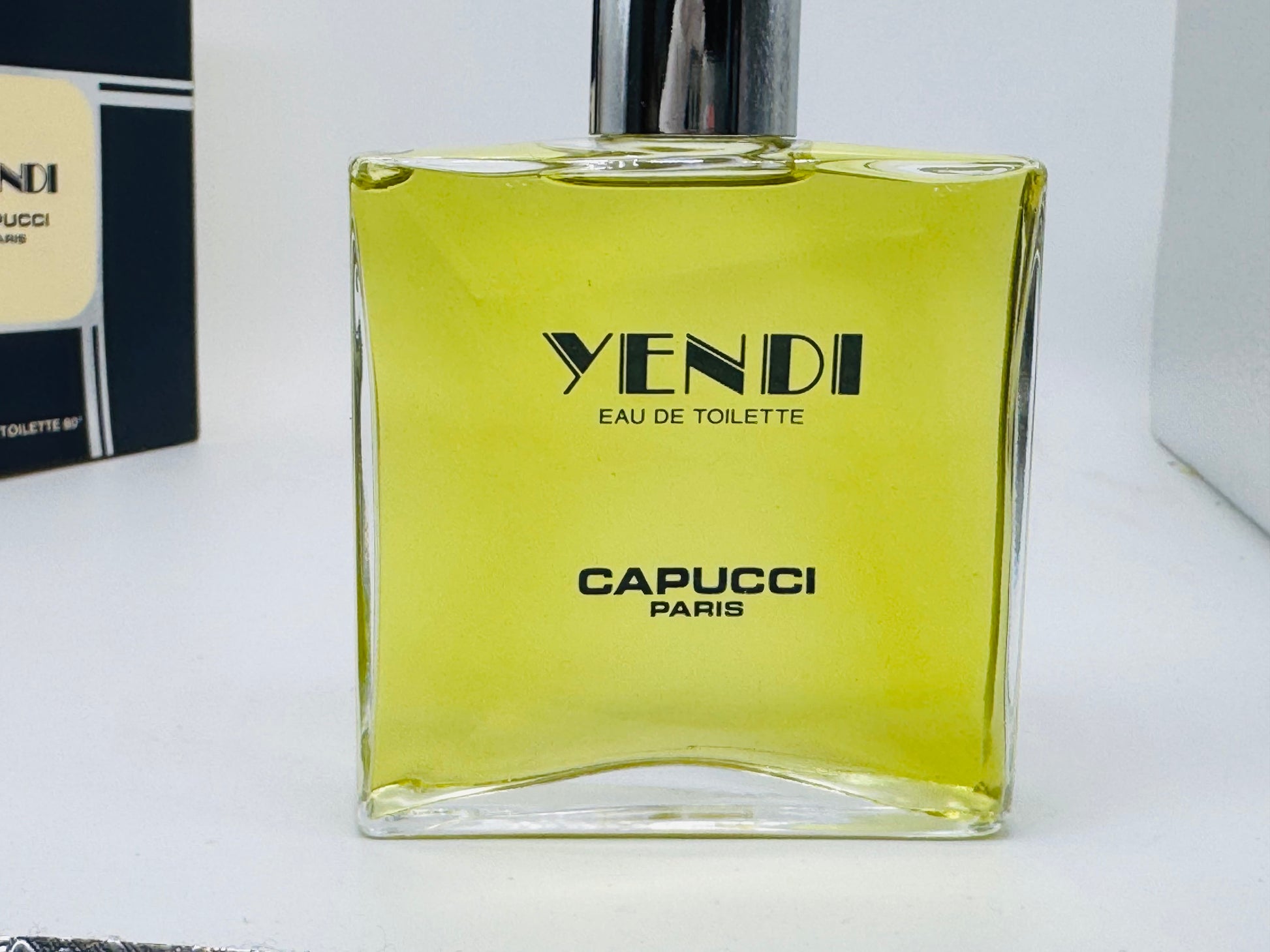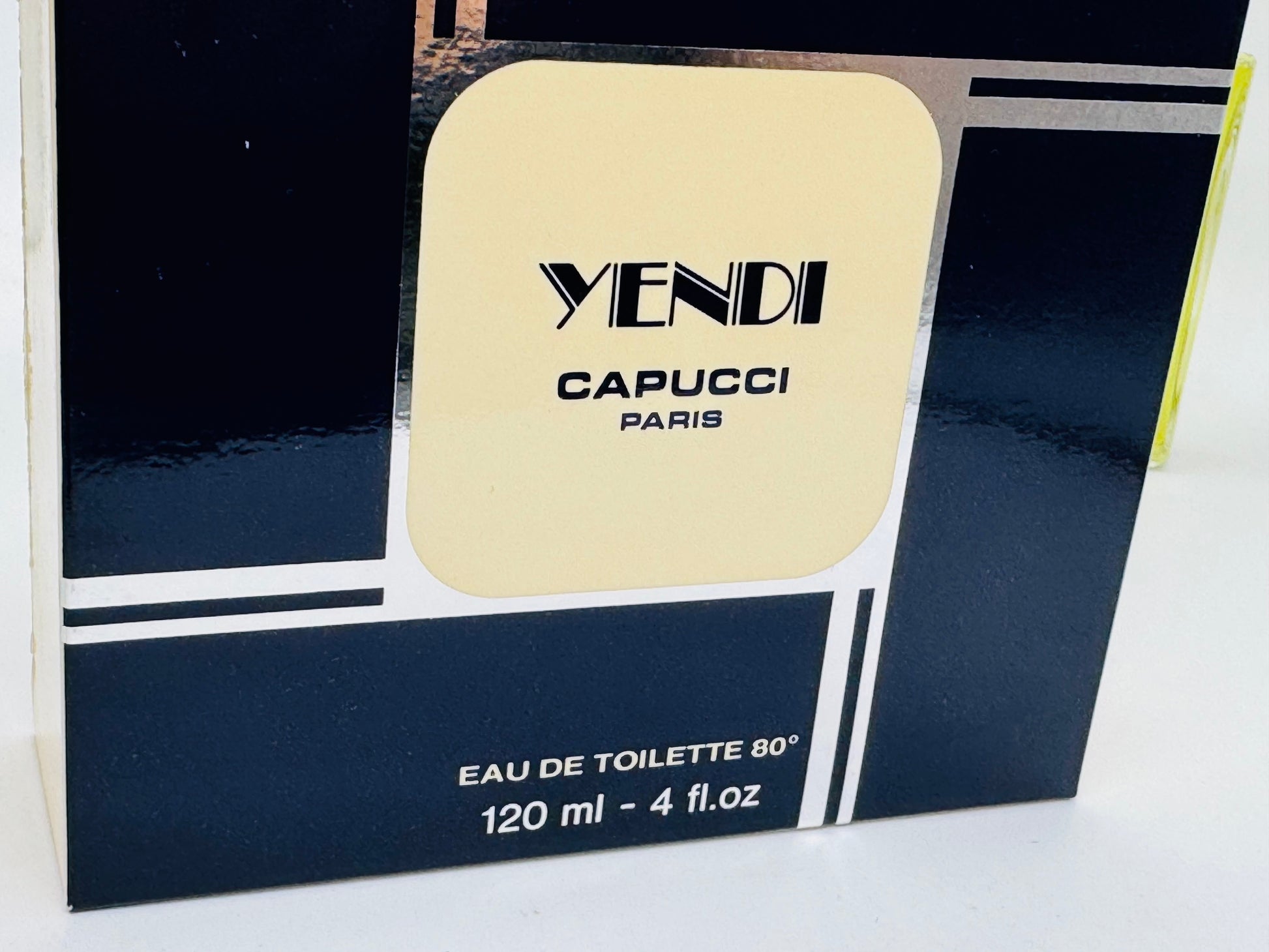 Profumo vintage anni 70 fuori produzione YENDI by ROBERTO CAPUCCI nella versione da 120 ml eau de toilette splash nuovo originale e ben conservato al riparo da luce e calore. Roberto capucci è sinonimo di qualita ed è considerato tra i marchi migliori della profumeria.